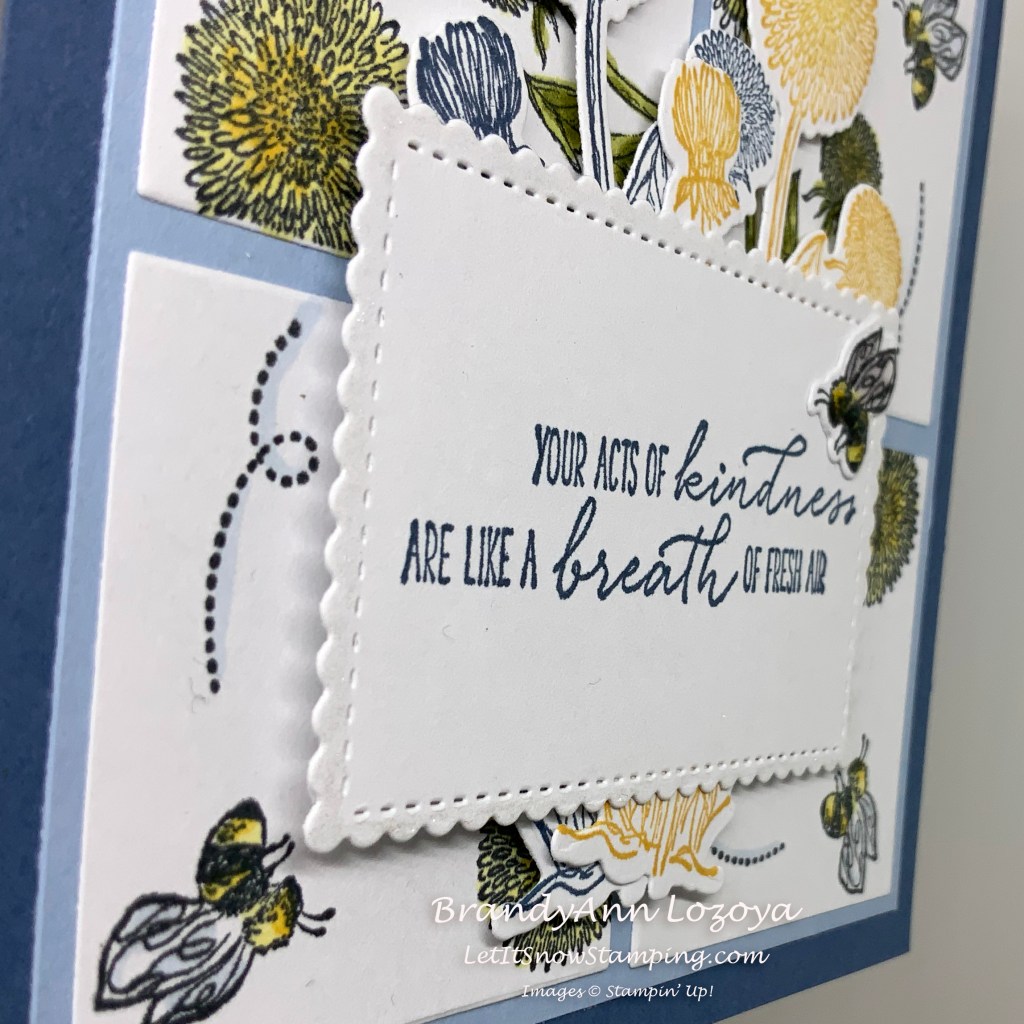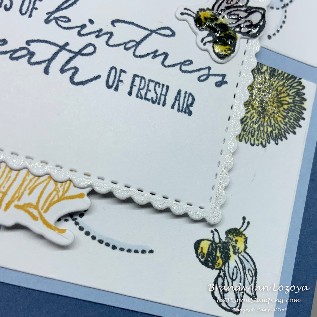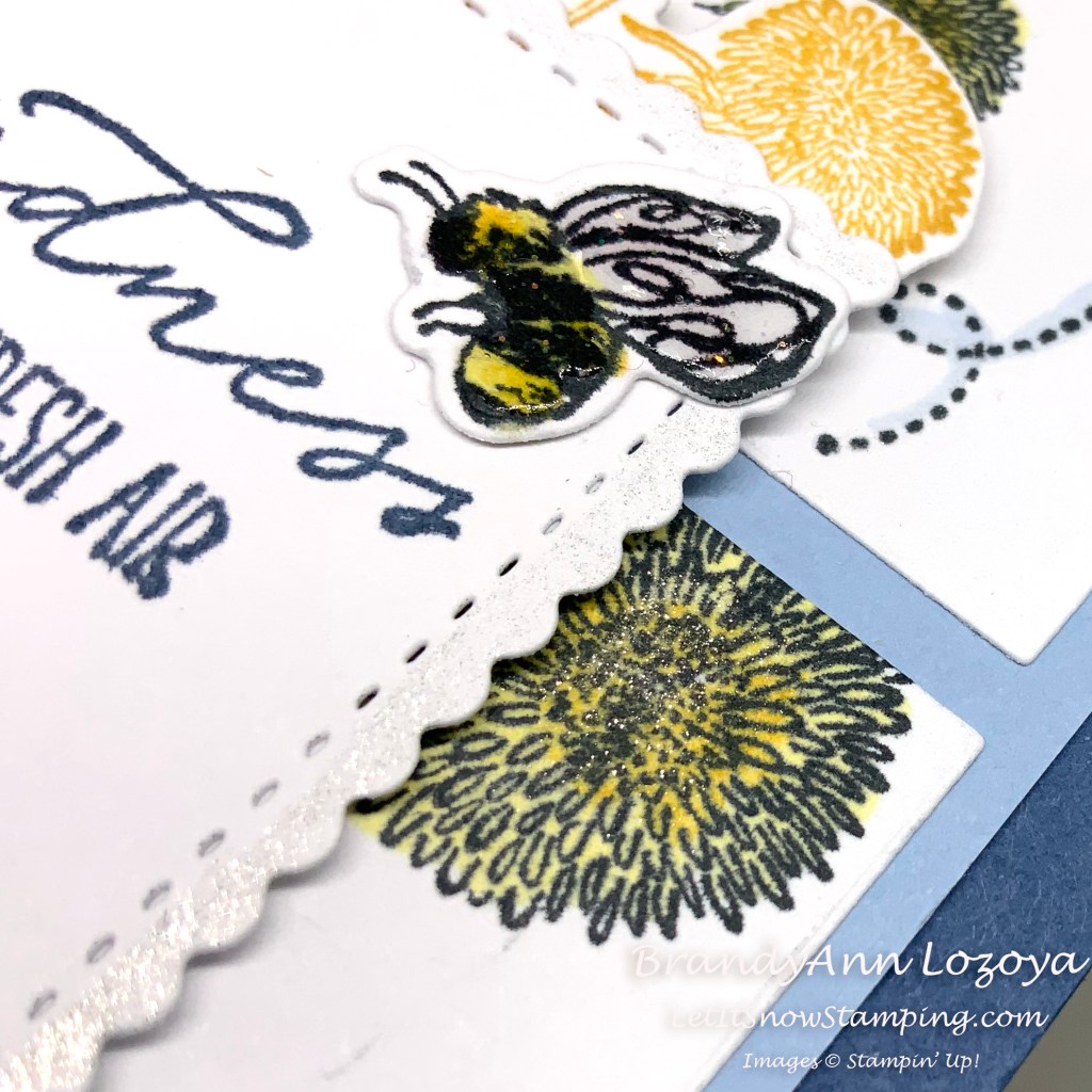 I added Shimmery Crystal Effects to the die cut bee and used Wink of Stella to add bling to the flowers and sentiment border.