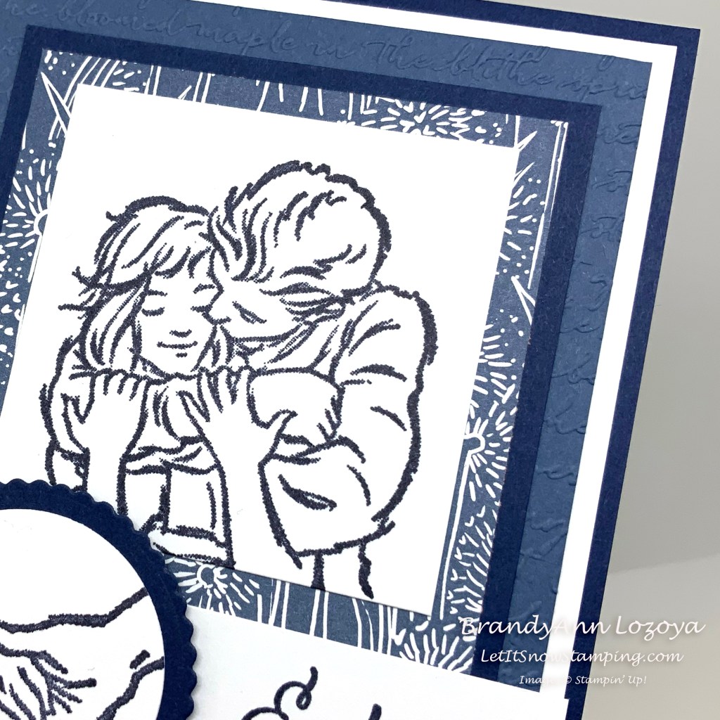 This week I decided to put the names of all of my remaining stamp sets from the current Annual Catalog and January-June Mini Catalog into a cup and have one of the kids draw a name. It was much easier than trying to hold all of the stamp cases like I did before! This week, my middle son chose Embrace Each Moment from the Annual Catalog. This is the perfect set to create with since I am running low on cards for my hubby’s luggage when he travels for work. Every time he leaves on a business trip, I sneak a card into one of his bags for him to find when he reaches his destination.