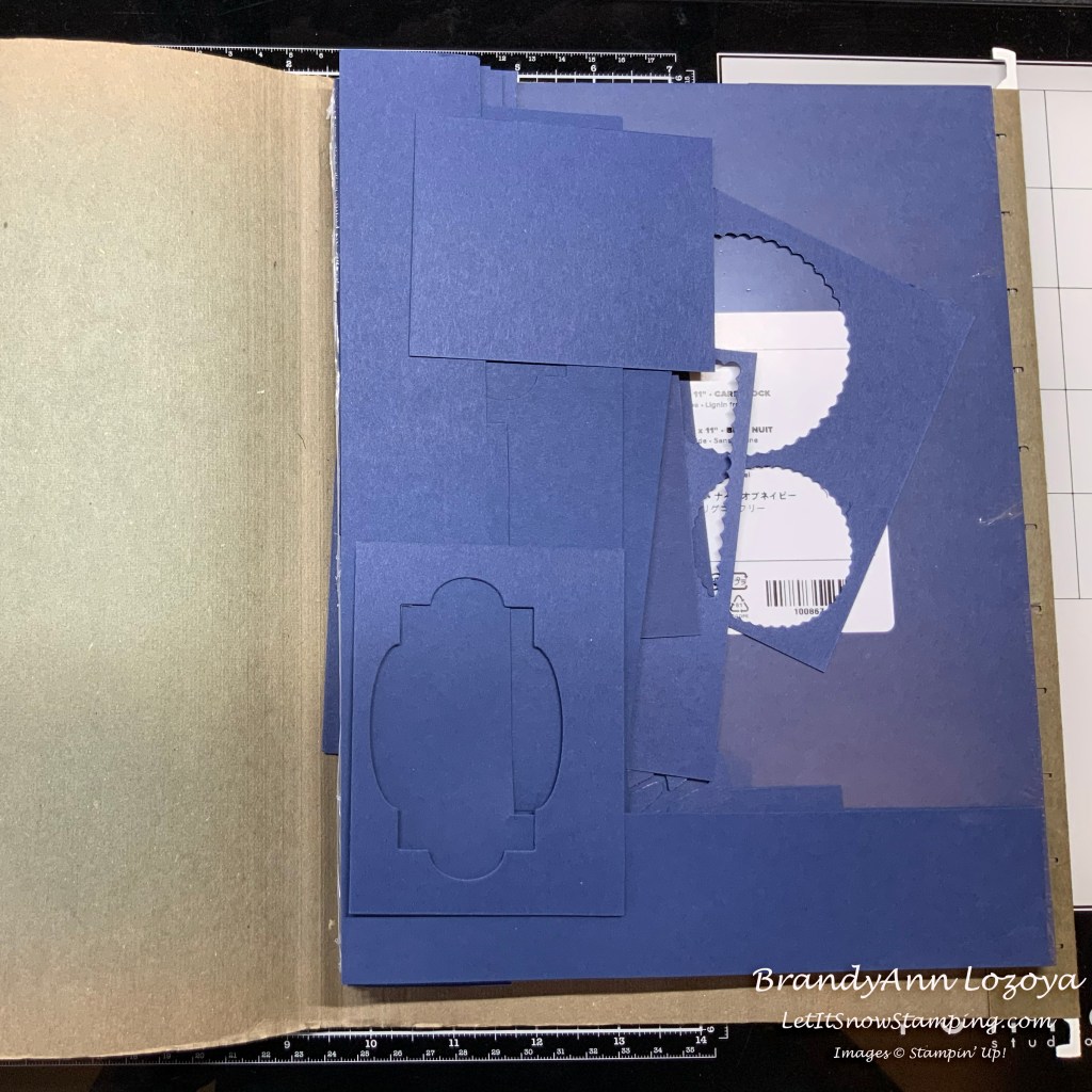 Inside each hanging file folder, this is what you will see. You will see the package of full sheets of cardstock. I keep them in the plastic as long as possible. I just slit the side open when I open them. In front of the full sheets I store all of my scraps for that color. Night of Navy has my most scraps since I use it a lot! If I can punch a shape out of the scrap, I keep it!