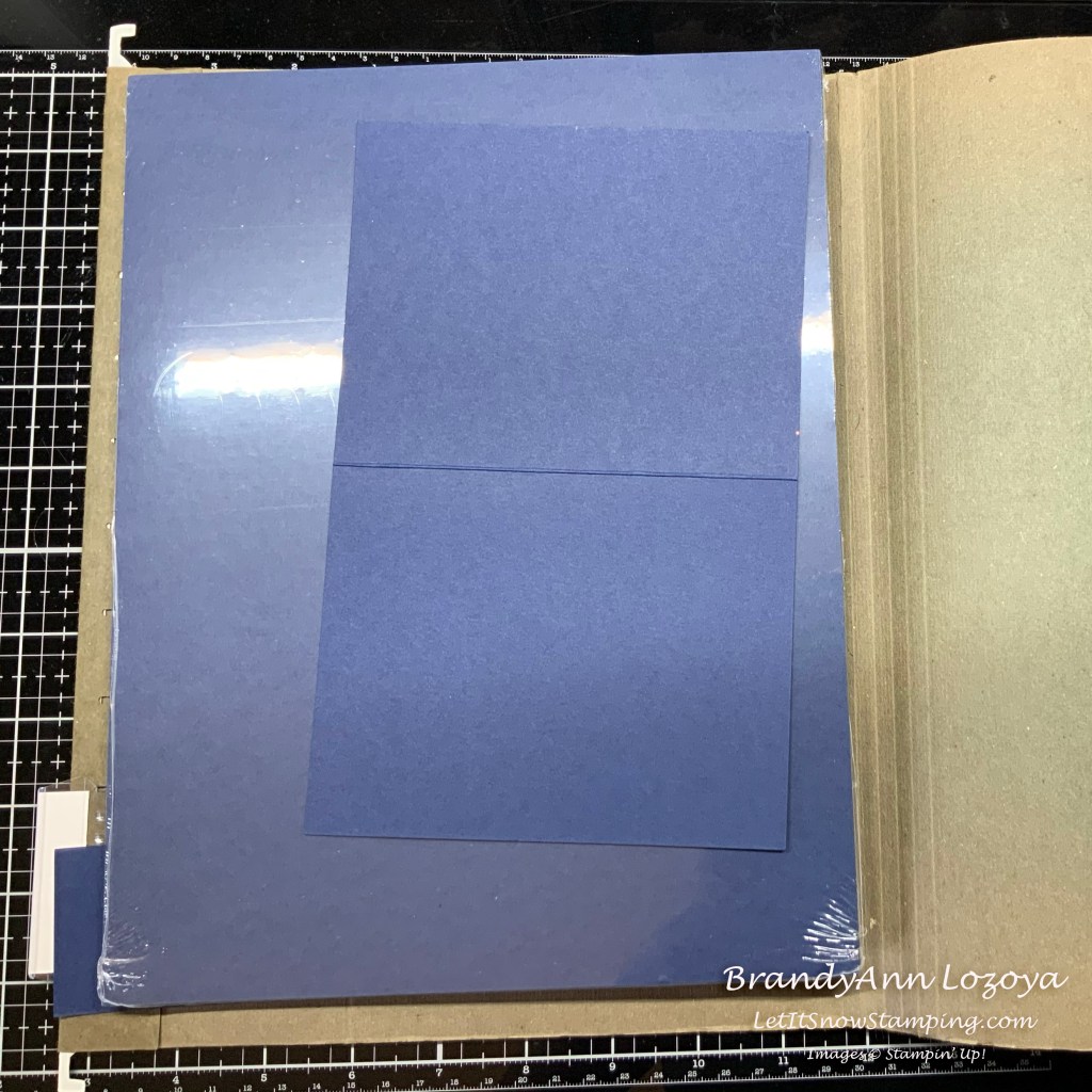 I started out with a Basic White card base that measures 8-1/2″x5-1/2″ and is scored at 4-1/4″. Then the Basic White card front measures 4″x5-1/4″. This layer I ran through the embossing machine with the Scripty 3D Embossing Folder.