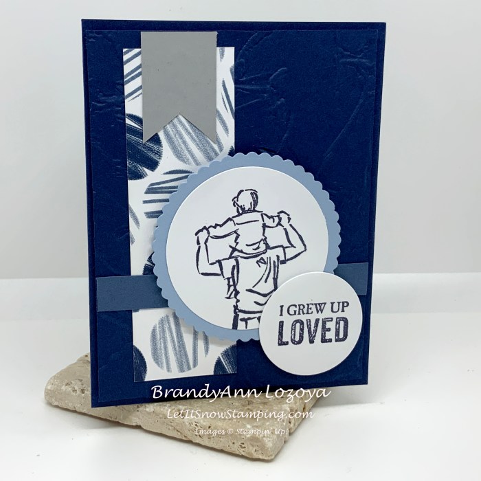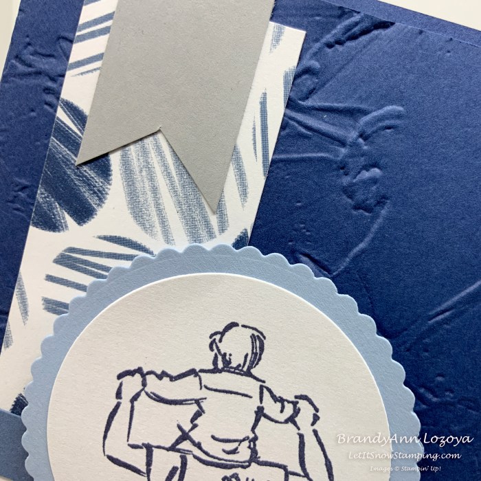 In any case, today’s card uses a Night of Navy card base. My card base measures 8-1/2″x5-1/2″ and is scored at 4-1/4″ for a crisp fold. Next I cut my card front to 4″x5-1/4″ and embossed it using the Painted Texture 3D Embossing Folder. This really helped my other elements pop on the card.