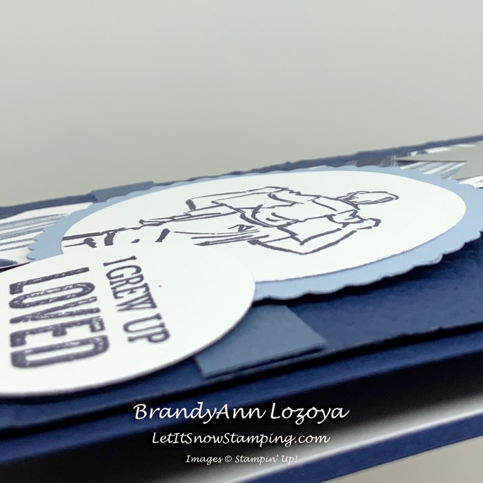 I used dimensionals to pop up the circle elements. I also used Foam Adhesive Strips to pop up the card front from the card base since they were both the same Night of Navy color.