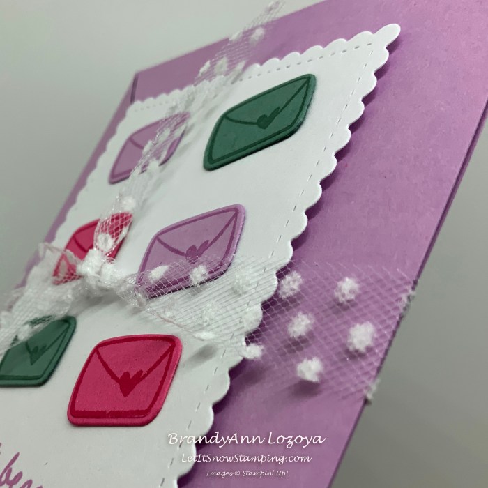 I am so sad to see the Polka Dot Tulle on the retired list! When I saw it on there, I ordered 3 more rolls right away! I love this tulle because it adds such a sweet element to the card without over powering it.