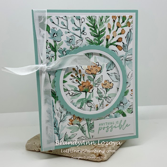 Today’s project did not go where I thought it was going to go as I designed it. Have you ever had that happen? Originally I had planned on using a stamped image for the focal point, but the Designer Series Paper (DSP) was so pretty, that I decided to create a frame to focus on the flower rather than hide it under a stamped element.