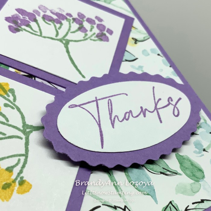What I love about this style of card, is that you can use any of the blossoms in the stamp set in the diamond squares, even if you only see a portion of the blossom. It creates a fun focal point for your card.