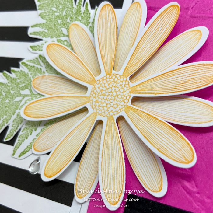 Add a Stampin’ Dimensional to one of the daisies and attach the other on top of the first at an offset angle.