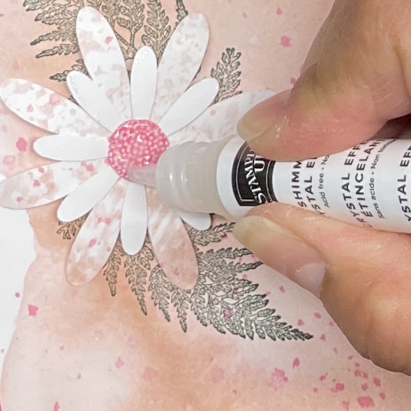 Glue the Polished Pink center to the center of the daisy and add some Shimmery Crystal Effects to add texture to it. Let dry.