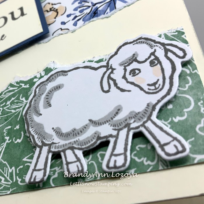 This is a beginner level card. I added Stampin’ Dimensionals to the sentiment and sheep to pop them out a bit. Stampin’ Dimensionals are an easy way to make your cards pop!