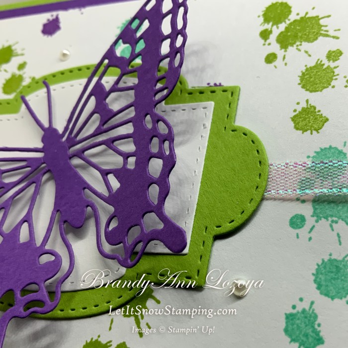 Die cut the largest butterfly die in the middle of the Gorgeous Grape card front mat.