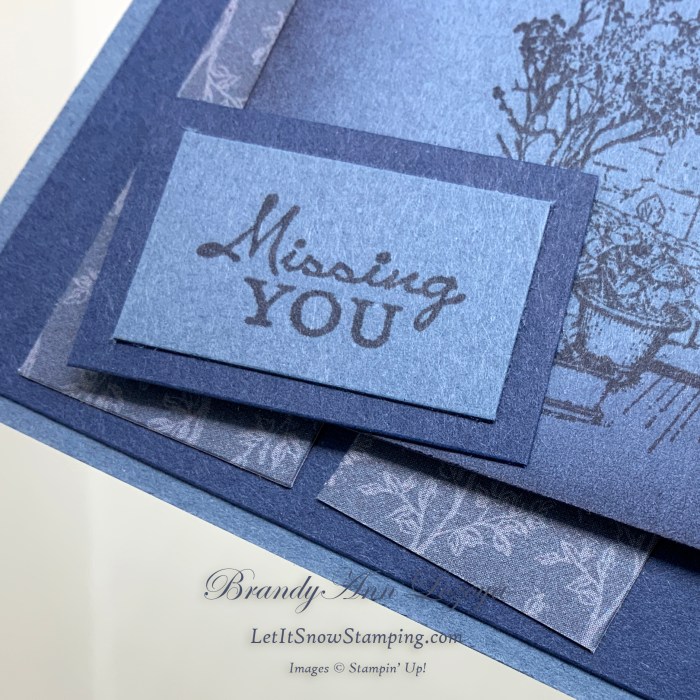 Stamp sentiment on the small Misty Moonlight piece using Night of Navy ink and adhere to the sentiment mat.