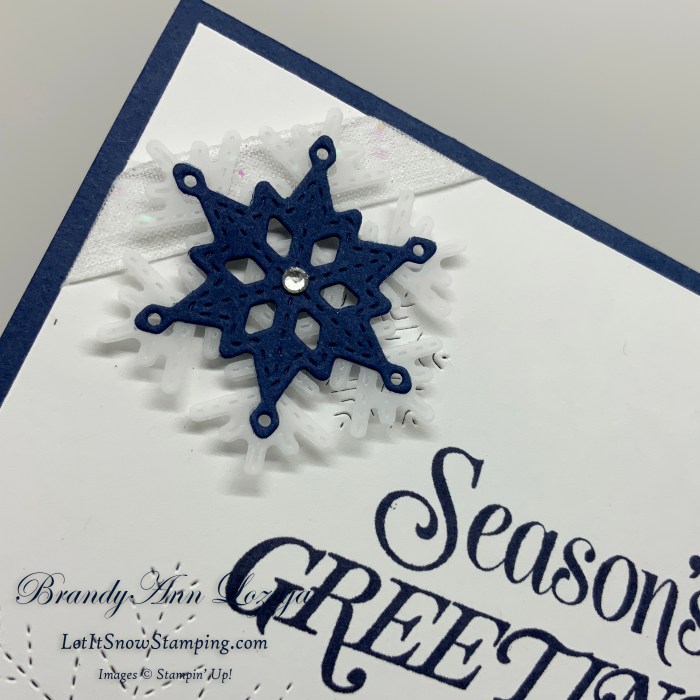 Add a Mini Stampin’ Dimensional that has been cut in half to the back of the glued snowflakes.