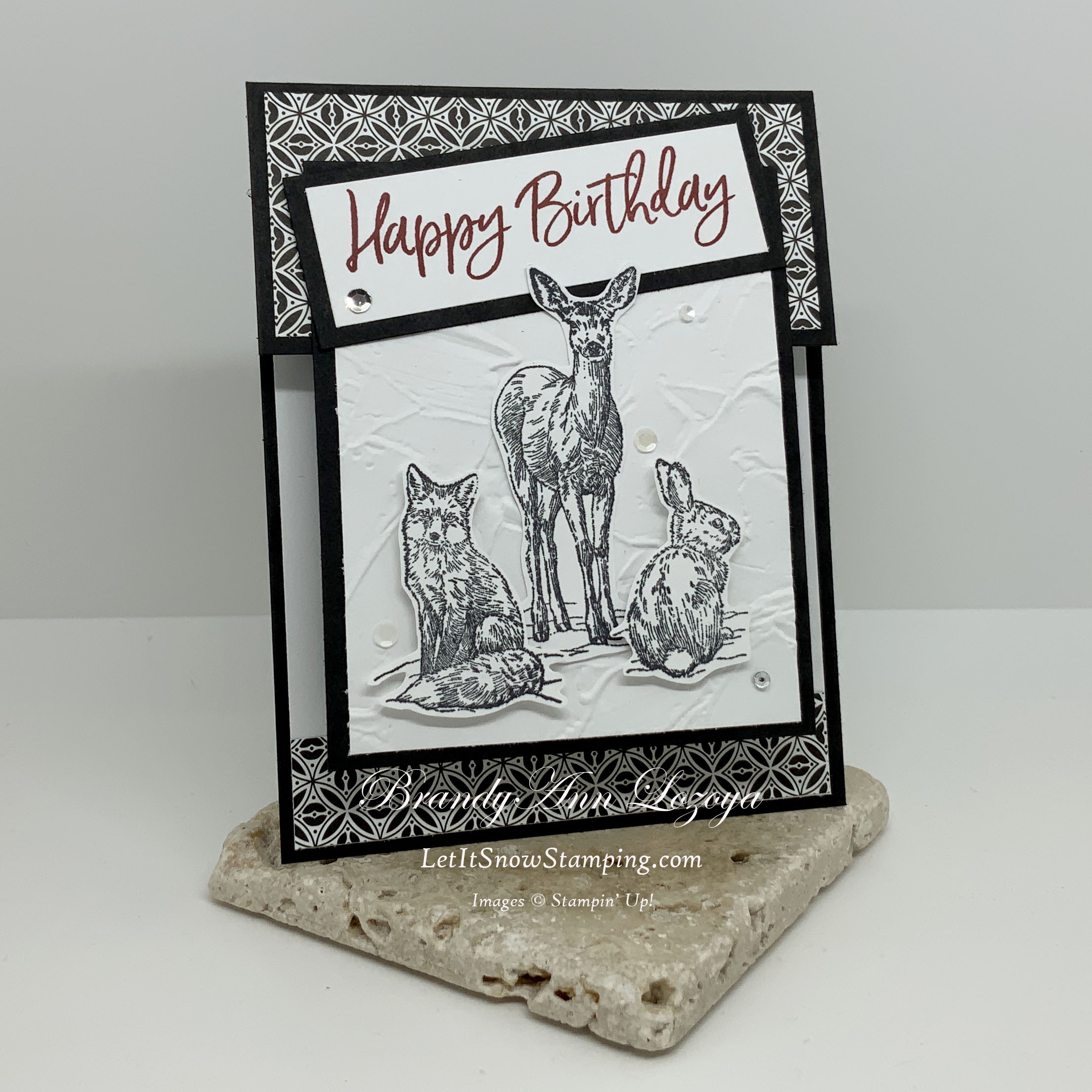 These little critters, while you’ll never see them in this pose in nature, they are just too adorable to showcase one at a time today. Today’s card features all three animals in the stamp set and a fun fold I learned at Stamp Camp this weekend from Lisa Lange.