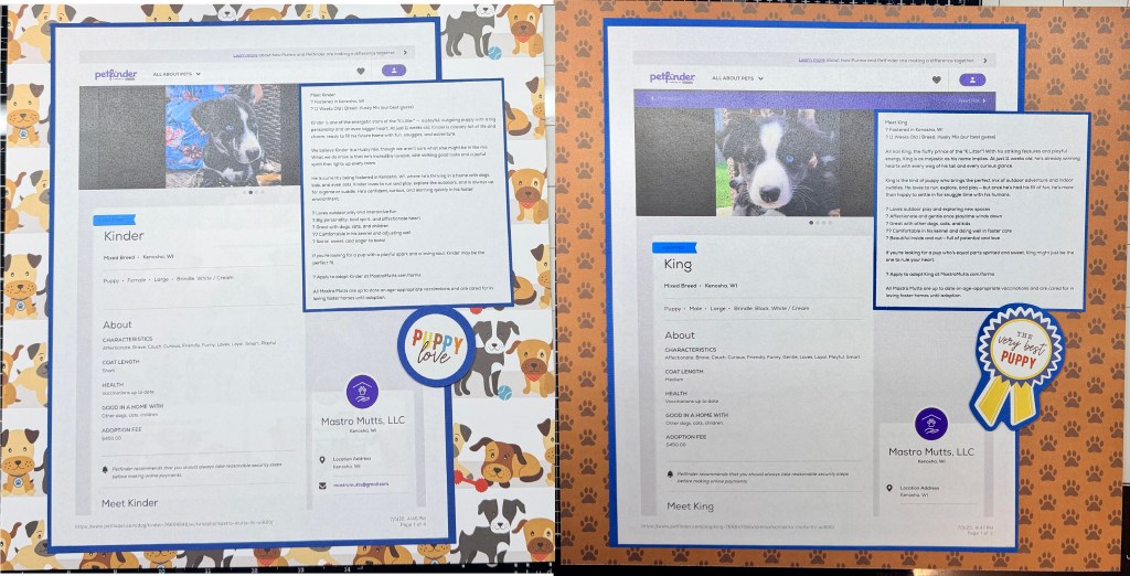 I saved and printed their Petfinder profile pages. They are pretty boring pages because the printed pages took up so much room.