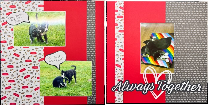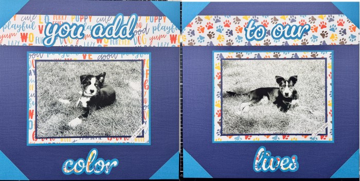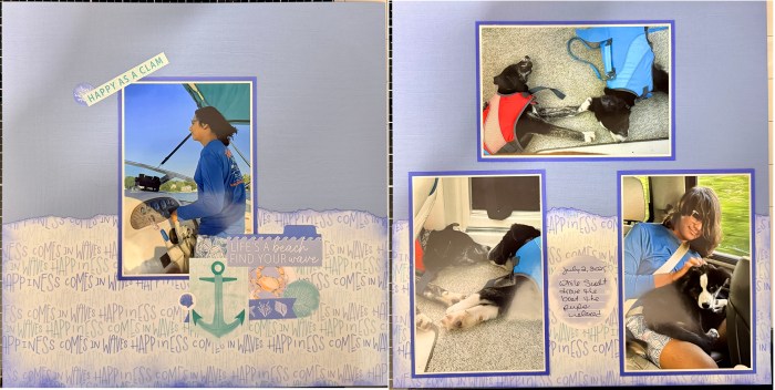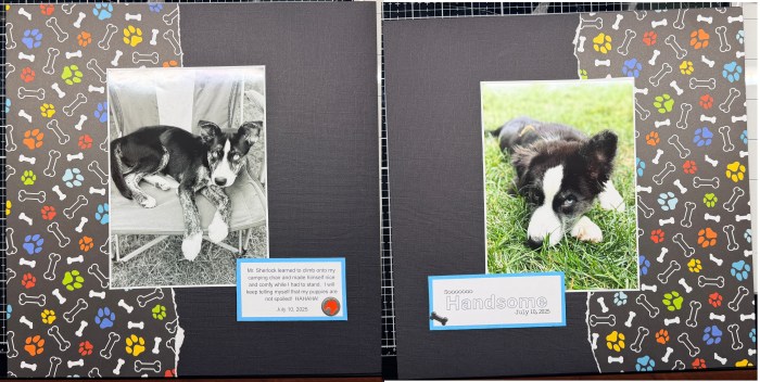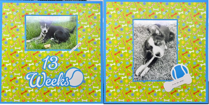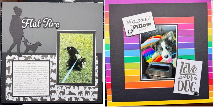 These two layouts do not go together, but they sit next to each other in the book. The Flat Tire dog was a funny story. I hope as he gets older this won’t happen as often!