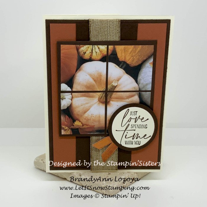 Today's project share from last weekend's Stampin' Sisters retreat includes an 11 card set. We used the So Sincere Cling Stamp Set from the current Holiday Mini Catalog (page 47) and the beautiful All About Autumn DSP (Item #162178). These cards are a simple design because the DSP is so beautiful that you do not … Continue reading So Sincere – All About Autumn